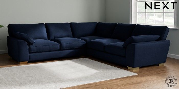 7.2.10 Buy Stamford Grand Relaxed Sit Large Corner Sofa - Universal Luxe Chenille Navy Blue Large Square Angle - Brushed Brass from the Next UK online shop Click here to use our accessible website