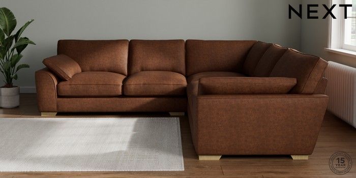 7.3.1 Buy Stamford Grand Relaxed Sit Large Corner Sofa - Universal Monza Faux Leather Easy Clean Chestnut Brown Large Square Angle - Light from the Next UK online shop Click here to use our accessible website