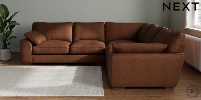 7.3.1 Buy Stamford Grand Relaxed Sit Large Corner Sofa - Universal Monza Faux Leather Easy Clean Chestnut Brown Large Square Angle - Mid from the Next UK online shop Click here to use our accessible website