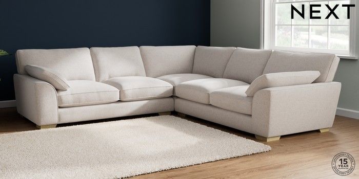 7.2.6 Buy Stamford Grand Relaxed Sit Large Corner Sofa - Universal Multi Weave Oyster Large Square Angle - Light from the Next UK online shop Click here to use our accessible website
