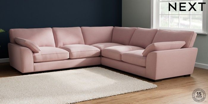 7.3.1 Buy Stamford Grand Relaxed Sit Large Corner Sofa - Universal Natural Mix Light Rose Pink Large Square Angle - Dark from the Next UK online shop Click here to use our accessible website