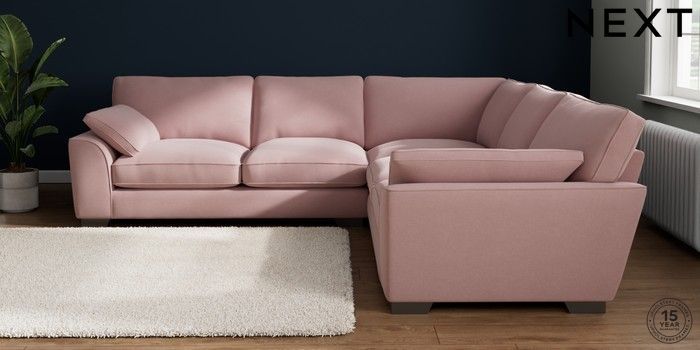 7.3.1 Buy Stamford Grand Relaxed Sit Large Corner Sofa - Universal Natural Mix Light Rose Pink Large Square Angle - Gunmetal from the Next UK online shop Click here to use our accessible website