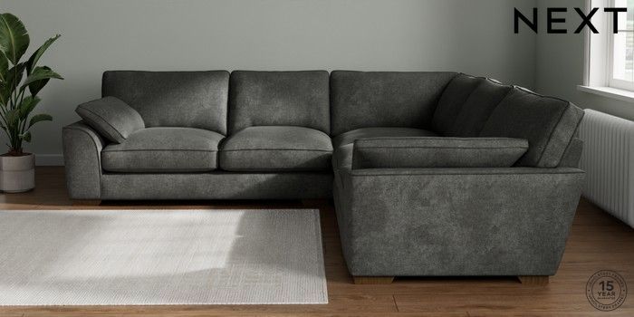 7.3.1 Buy Stamford Grand Relaxed Sit Large Corner Sofa - Universal Plush Chenille Dark Grey Large Square Angle - Mid from the Next UK online shop