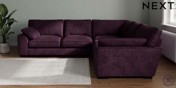 7.3.1 Buy Stamford Grand Relaxed Sit Large Corner Sofa - Universal Plush Chenille Dark Plum Purple Large Square Angle - Dark from the Next UK online shop Click here to use our accessible website