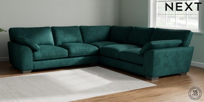 7.3.1 Buy Stamford Grand Relaxed Sit Large Corner Sofa - Universal Plush Chenille Dark Teal Green Large Square Angle - Gunmetal from the Next UK online shop Click here to use our accessible website