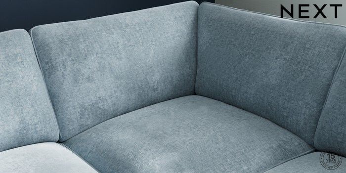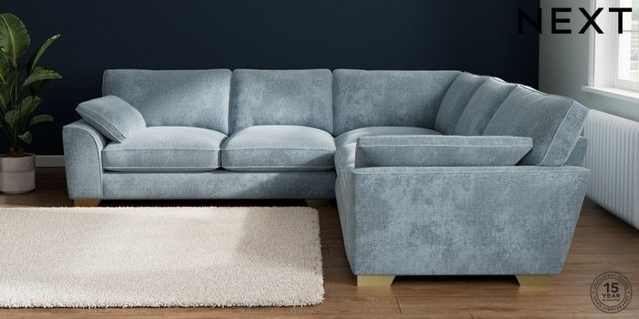 7.3.1 Buy Stamford Grand Relaxed Sit Large Corner Sofa - Universal Plush Chenille Light Blue Large Square Angle - Brushed Brass from the Next UK online shop