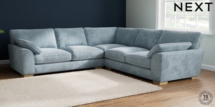 7.2.6 Buy Stamford Grand Relaxed Sit Large Corner Sofa - Universal Plush Chenille Light Blue Large Square Angle - Light from the Next UK online shop Click here to use our accessible website
