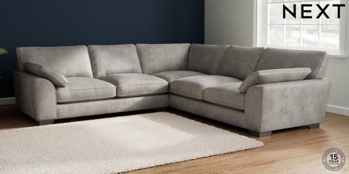 7.2.10 Buy Stamford Grand Relaxed Sit Large Corner Sofa - Universal Plush Chenille Light Grey Large Square Angle - Gunmetal from the Next UK online shop Click here to use our accessible website
