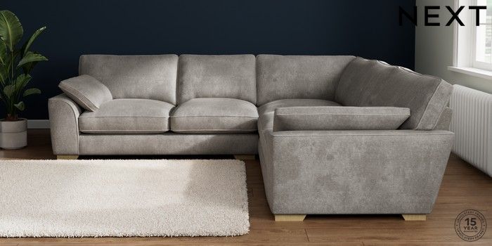 7.3.1 Buy Stamford Grand Relaxed Sit Large Corner Sofa - Universal Plush Chenille Light Grey Large Square Angle - Light from the Next UK online shop