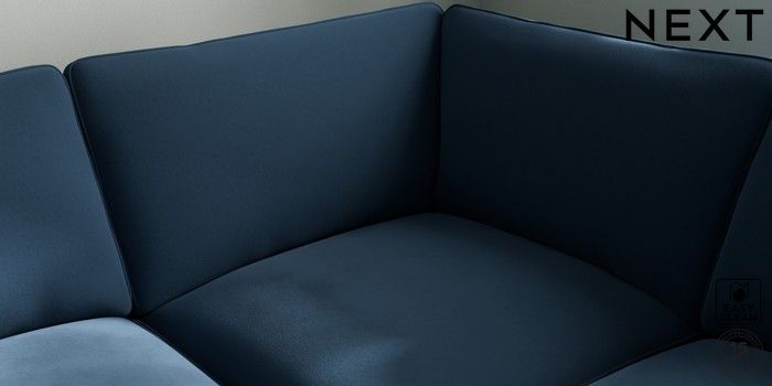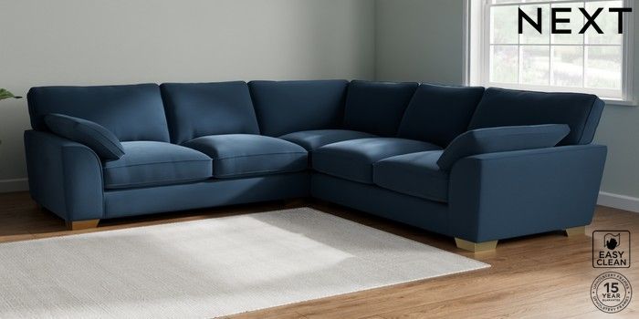 7.3.1 Buy Stamford Grand Relaxed Sit Large Corner Sofa - Universal Plush Velvet Easy Clean Airforce Blue Large Square Angle - Brushed Brass from the Next UK online shop Click here to use our accessible website