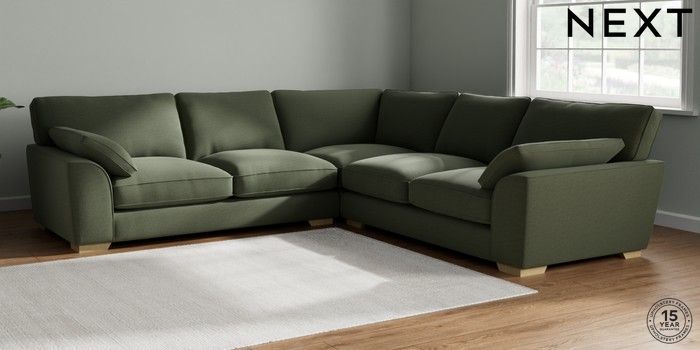 7.3.1 Buy Stamford Grand Relaxed Sit Large Corner Sofa - Universal Relaxed Linen Look Dark Green Large Square Angle - Light from the Next UK online shop Click here to use our accessible website