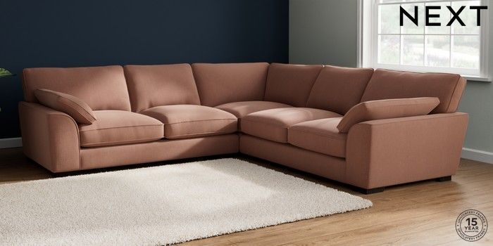 7.2.10 Buy Stamford Grand Relaxed Sit Large Corner Sofa - Universal Relaxed Linen Look Light Rust Brown Large Square Angle - Dark from the Next UK online shop Click here to use our accessible website