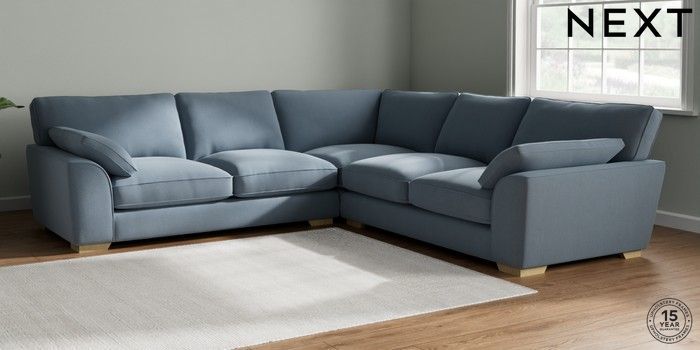 7.2.10 Buy Stamford Grand Relaxed Sit Large Corner Sofa - Universal Relaxed Linen Look Mid Blue Large Square Angle - Light from the Next UK online shop Click here to use our accessible website