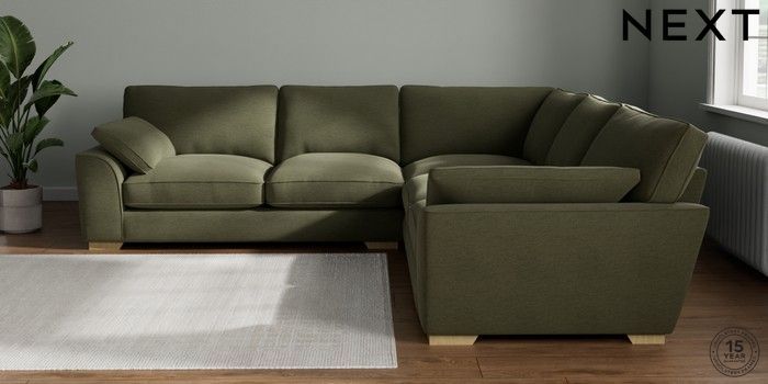 6.12.1 Buy Stamford Grand Relaxed Sit Large Corner Sofa - Universal Ripple Chenille Mid Moss Green Large Square Angle - Light from the Next UK online shop Click here to use our accessible website