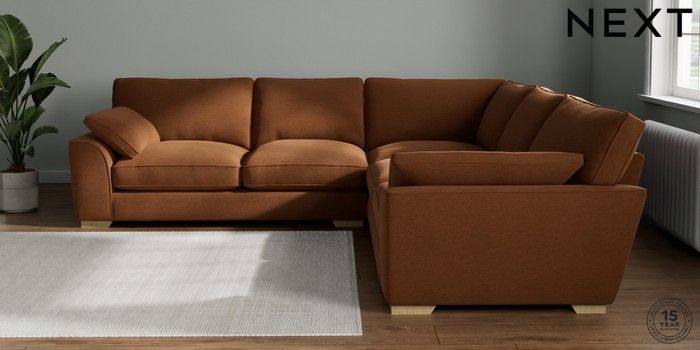 6.12.1 Buy Stamford Grand Relaxed Sit Large Corner Sofa - Universal Ripple Chenille Mid Rust Brown Large Square Angle - Light from the Next UK online shop Click here to use our accessible website