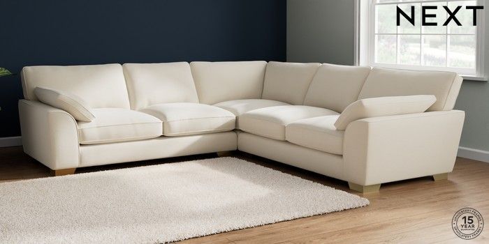 7.2.10 Buy Stamford Grand Relaxed Sit Large Corner Sofa - Universal Ripple Chenille Oyster Large Square Angle - Brushed Brass from the Next UK online shop Click here to use our accessible website