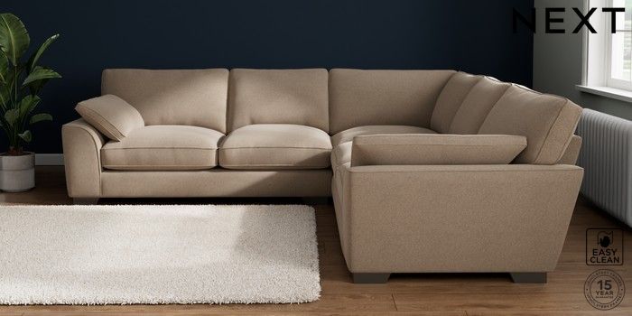 7.3.1 Buy Stamford Grand Relaxed Sit Large Corner Sofa - Universal Tweedy Blend Easy Clean Light Dove Natural Large Square Angle - Gunmetal from the Next UK online shop Click here to use our accessible website