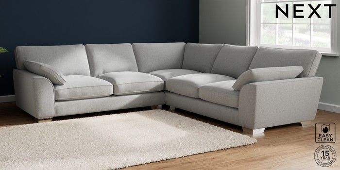 7.3.1 Buy Stamford Grand Relaxed Sit Large Corner Sofa - Universal Tweedy Blend Easy Clean Light Silver Grey Large Square Angle - Chrome Metal from the Next UK online shop Click here to use our accessible website