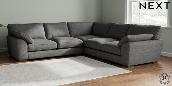 7.2.10 Buy Stamford Grand Relaxed Sit Large Corner Sofa - Universal Tweedy Chenille Dark Grey Large Square Angle - Mid from the Next UK online shop Click here to use our accessible website