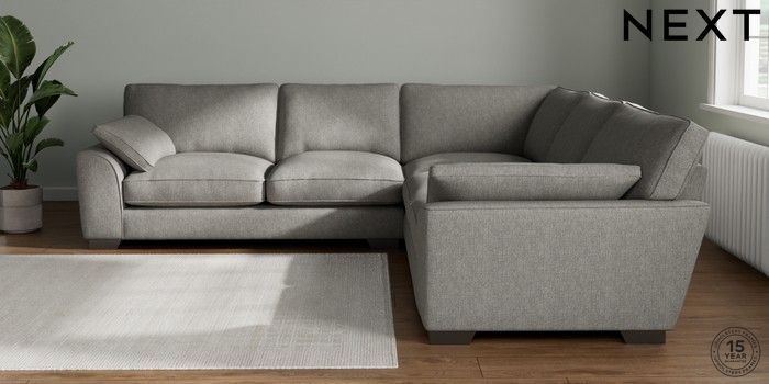 7.3.1 Buy Stamford Grand Relaxed Sit Large Corner Sofa - Universal Tweedy Chenille Mid Grey Large Square Angle - Gunmetal from the Next UK online shop Click here to use our accessible website