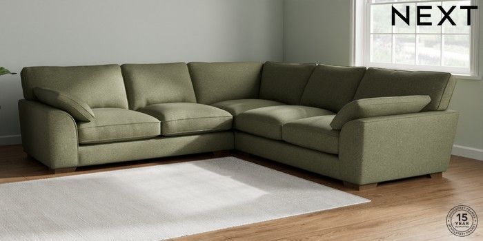 7.3.1 Buy Stamford Grand Relaxed Sit Large Corner Sofa - Universal Tweedy Chenille Mid Moss Green Large Square Angle - Mid from the Next UK online shop Click here to use our accessible website