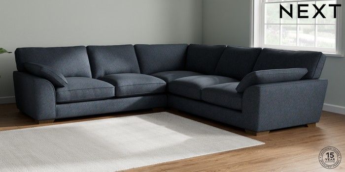 7.2.10 Buy Stamford Grand Relaxed Sit Large Corner Sofa - Universal Tweedy Chenille Navy Blue Large Square Angle - Mid from the Next UK online shop Click here to use our accessible website