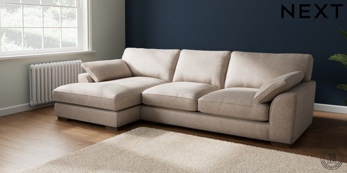 7.2.10 Buy Stamford Grand Relaxed Sit Large Sofa Chaise - Left Hand Boucle Chenille Light Natural Large Square Angle - Mid from the Next UK online shop Click here to use our accessible website