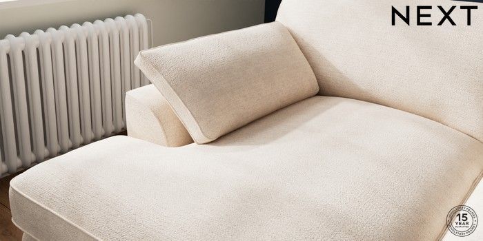 7.3.1 Buy Stamford Grand Relaxed Sit Large Sofa Chaise - Left Hand Boucle Chenille Oyster Large Square Angle - Chrome Metal from the Next UK online shop Click here to use our accessible website