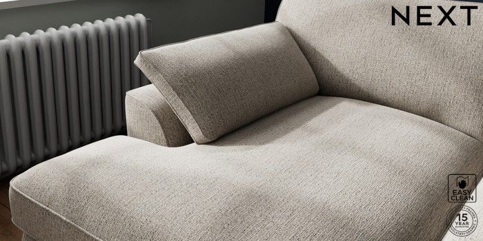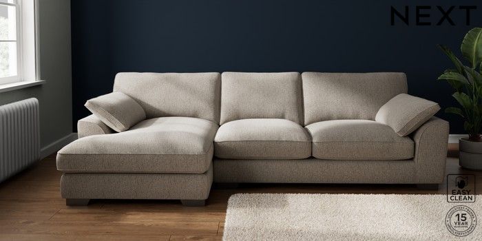 7.3.1 Buy Stamford Grand Relaxed Sit Large Sofa Chaise - Left Hand Chunky Boucle Easy Clean Dove Large Square Angle - Gunmetal from the Next UK online shop Click here to use our accessible website
