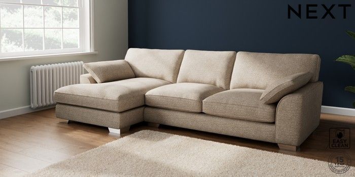 7.3.1 Buy Stamford Grand Relaxed Sit Large Sofa Chaise - Left Hand Chunky Boucle Easy Clean Mid Natural Large Square Angle - Chrome Metal from the Next UK online shop Click here to use our accessible website