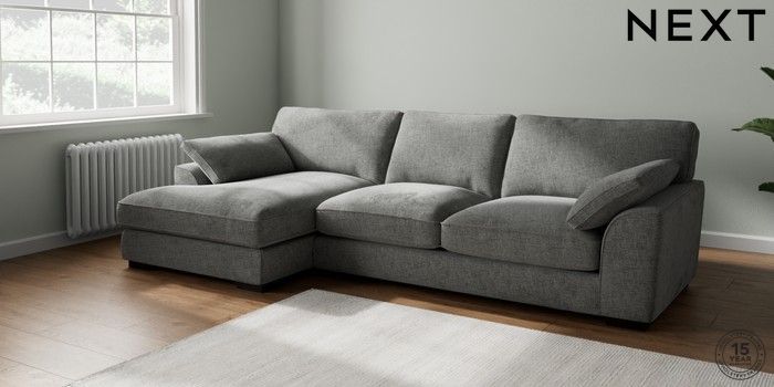 7.2.10 Buy Stamford Grand Relaxed Sit Large Sofa Chaise - Left Hand Chunky Chenille Dark Grey Large Square Angle - Dark from the Next UK online shop Click here to use our accessible website