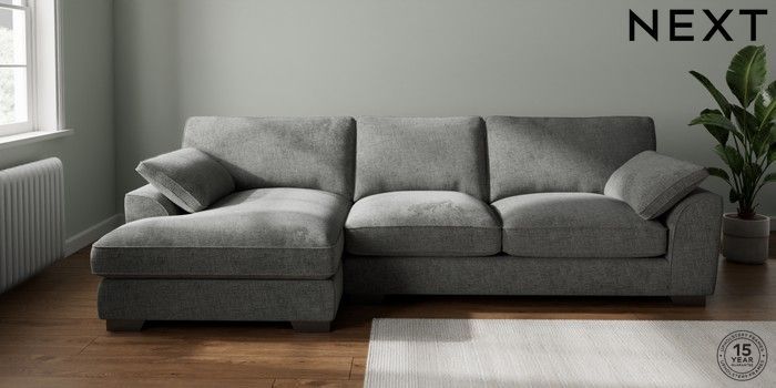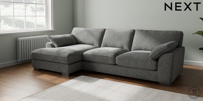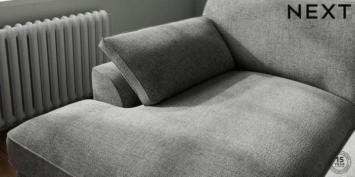 7.3.1 Buy Stamford Grand Relaxed Sit Large Sofa Chaise - Left Hand Chunky Chenille Dark Grey Large Square Angle - Gunmetal from the Next UK online shop Click here to use our accessible website