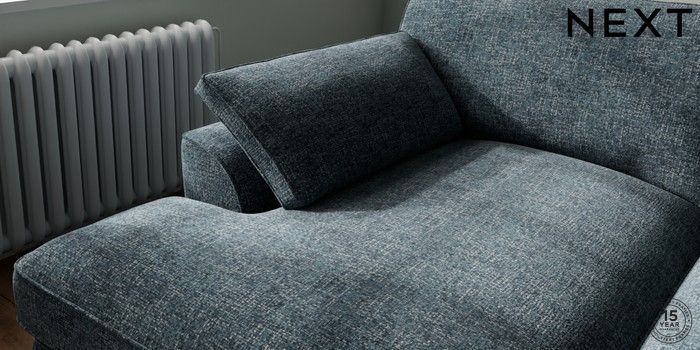 7.3.1 Buy Stamford Grand Relaxed Sit Large Sofa Chaise - Left Hand Chunky Chenille Dark Navy Blue Large Square Angle - Gunmetal from the Next UK online shop Click here to use our accessible website