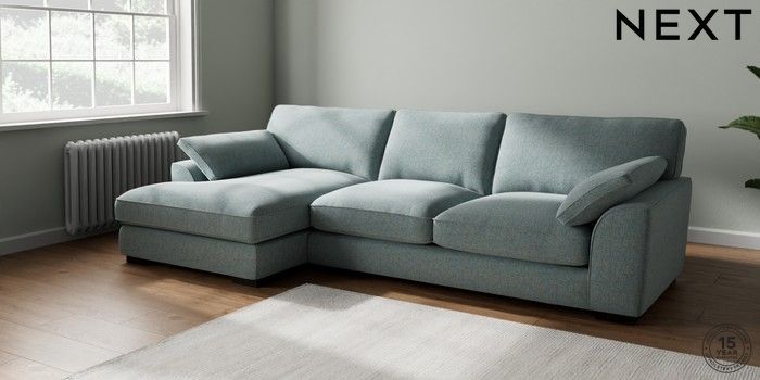 7.3.1 Buy Stamford Grand Relaxed Sit Large Sofa Chaise - Left Hand Chunky Marl Mid Blue Large Square Angle - Dark from the Next UK online shop Click here to use our accessible website