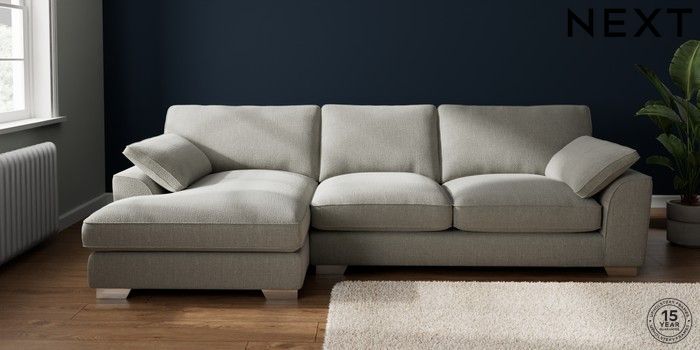 7.3.1 Buy Stamford Grand Relaxed Sit Large Sofa Chaise - Left Hand Chunky Texture Dove Large Square Angle - Chrome Metal from the Next UK online shop Click here to use our accessible website