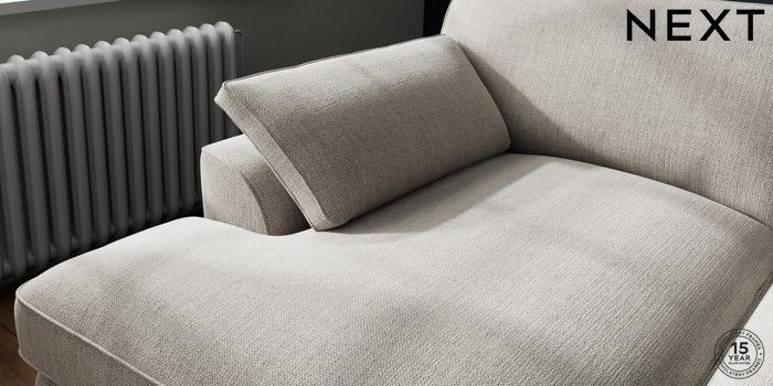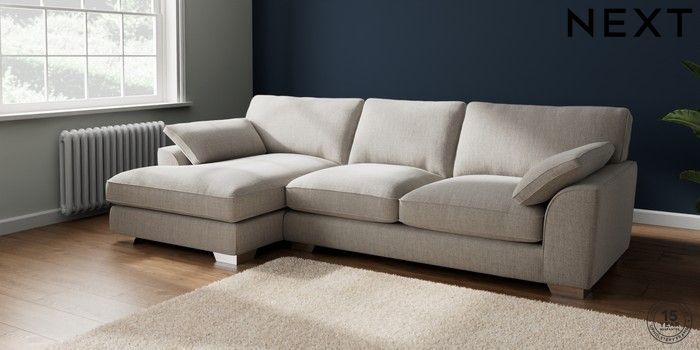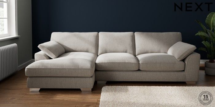 7.3.1 Buy Stamford Grand Relaxed Sit Large Sofa Chaise - Left Hand Chunky Weave Dove Grey Large Square Angle - Chrome Metal from the Next UK online shop Click here to use our accessible website