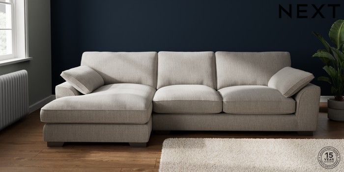 7.3.1 Buy Stamford Grand Relaxed Sit Large Sofa Chaise - Left Hand Chunky Weave Dove Grey Large Square Angle - Gunmetal from the Next UK online shop Click here to use our accessible website