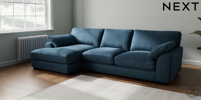 7.2.10 Buy Stamford Grand Relaxed Sit Large Sofa Chaise - Left Hand Cotswold Chenille Dark Blue Large Square Angle - Dark from the Next UK online shop Click here to use our accessible website