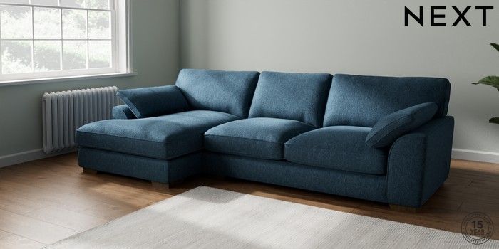 7.2.10 Buy Stamford Grand Relaxed Sit Large Sofa Chaise - Left Hand Cotswold Chenille Dark Blue Large Square Angle - Mid from the Next UK online shop Click here to use our accessible website
