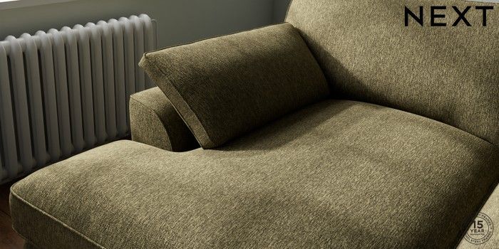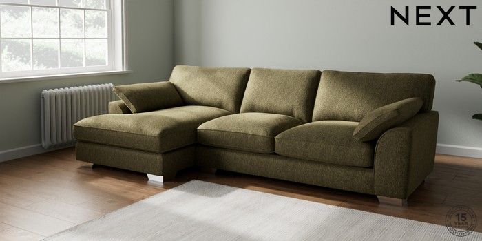 7.3.1 Buy Stamford Grand Relaxed Sit Large Sofa Chaise - Left Hand Cotswold Chenille Dark Green Large Square Angle - Chrome Metal from the Next UK online shop Click here to use our accessible website