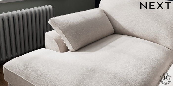 7.3.1 Buy Stamford Grand Relaxed Sit Large Sofa Chaise - Left Hand Cotswold Chenille Oyster Large Square Angle - Chrome Metal from the Next UK online shop Click here to use our accessible website