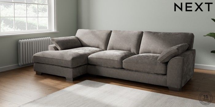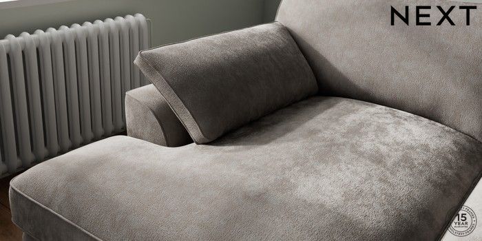 7.3.1 Buy Stamford Grand Relaxed Sit Large Sofa Chaise - Left Hand Distressed Velour French Grey Large Square Angle - Gunmetal from the Next UK online shop Click here to use our accessible website