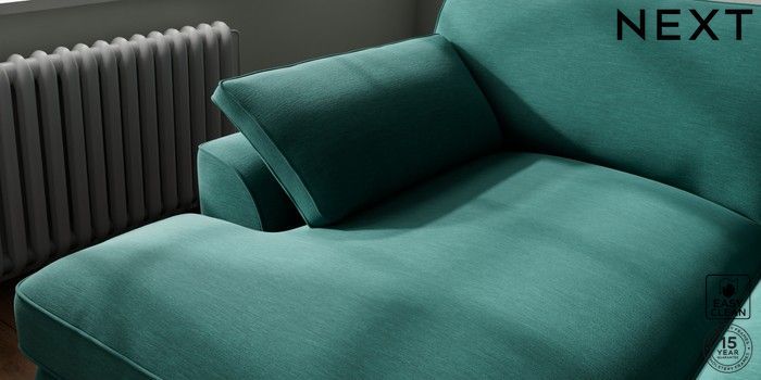 7.3.1 Buy Stamford Grand Relaxed Sit Large Sofa Chaise - Left Hand Fine Chenille Easy Clean Dark Juniper Green Large Square Angle - Gunmetal from the Next UK online shop Click here to use our accessible website