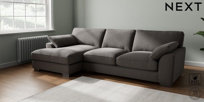 7.3.1 Buy Stamford Grand Relaxed Sit Large Sofa Chaise - Left Hand Fine Chenille Easy Clean Dark Smoke Grey Large Square Angle - Gunmetal from the Next UK online shop Click here to use our accessible website