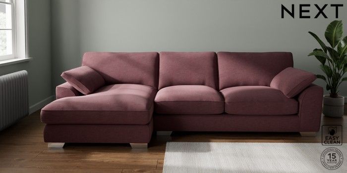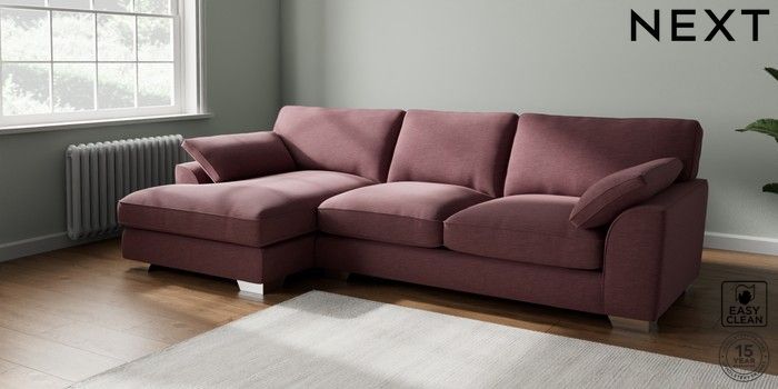 7.3.1 Buy Stamford Grand Relaxed Sit Large Sofa Chaise - Left Hand Fine Chenille Easy Clean Mid Mulberry Purple Large Square Angle - Chrome Metal from the Next UK online shop Click here to use our accessible website