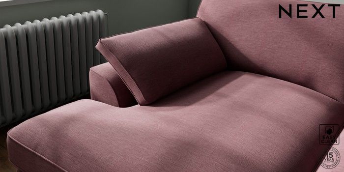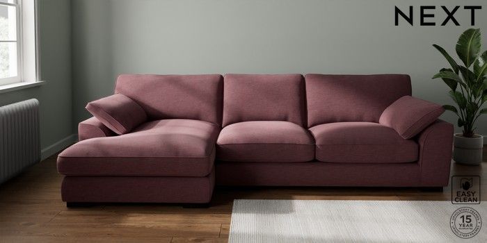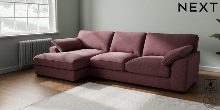 7.3.1 Buy Stamford Grand Relaxed Sit Large Sofa Chaise - Left Hand Fine Chenille Easy Clean Mid Mulberry Purple Large Square Angle - Dark from the Next UK online shop Click here to use our accessible website