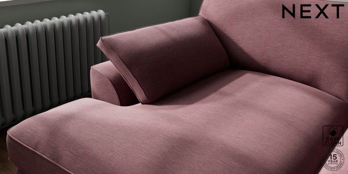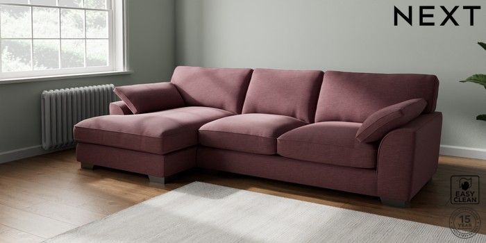7.3.1 Buy Stamford Grand Relaxed Sit Large Sofa Chaise - Left Hand Fine Chenille Easy Clean Mid Mulberry Purple Large Square Angle - Gunmetal from the Next UK online shop Click here to use our accessible website
