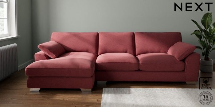 7.3.1 Buy Stamford Grand Relaxed Sit Large Sofa Chaise - Left Hand Fine Chenille Easy Clean Mid Pink Large Square Angle - Chrome Metal from the Next UK online shop Click here to use our accessible website