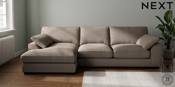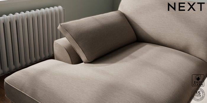7.3.1 Buy Stamford Grand Relaxed Sit Large Sofa Chaise - Left Hand Fine Chenille Easy Clean Mid Taupe Brown Large Square Angle - Dark from the Next UK online shop Click here to use our accessible website