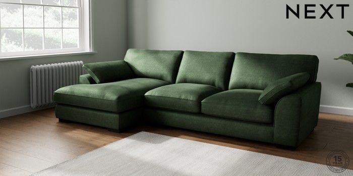 7.3.1 Buy Stamford Grand Relaxed Sit Large Sofa Chaise - Left Hand Luxe Chenille Dark Green Large Square Angle - Dark from the Next UK online shop Click here to use our accessible website